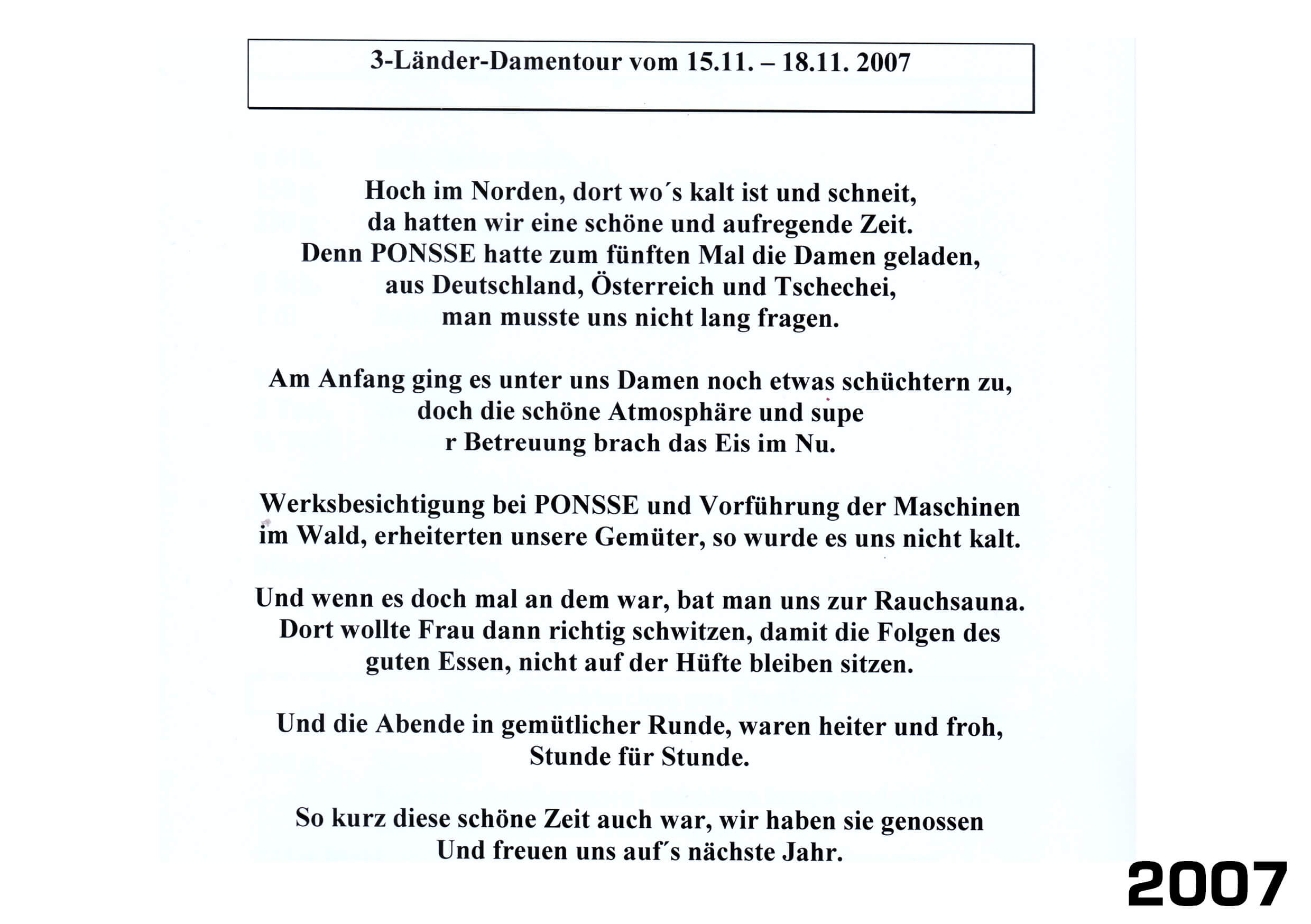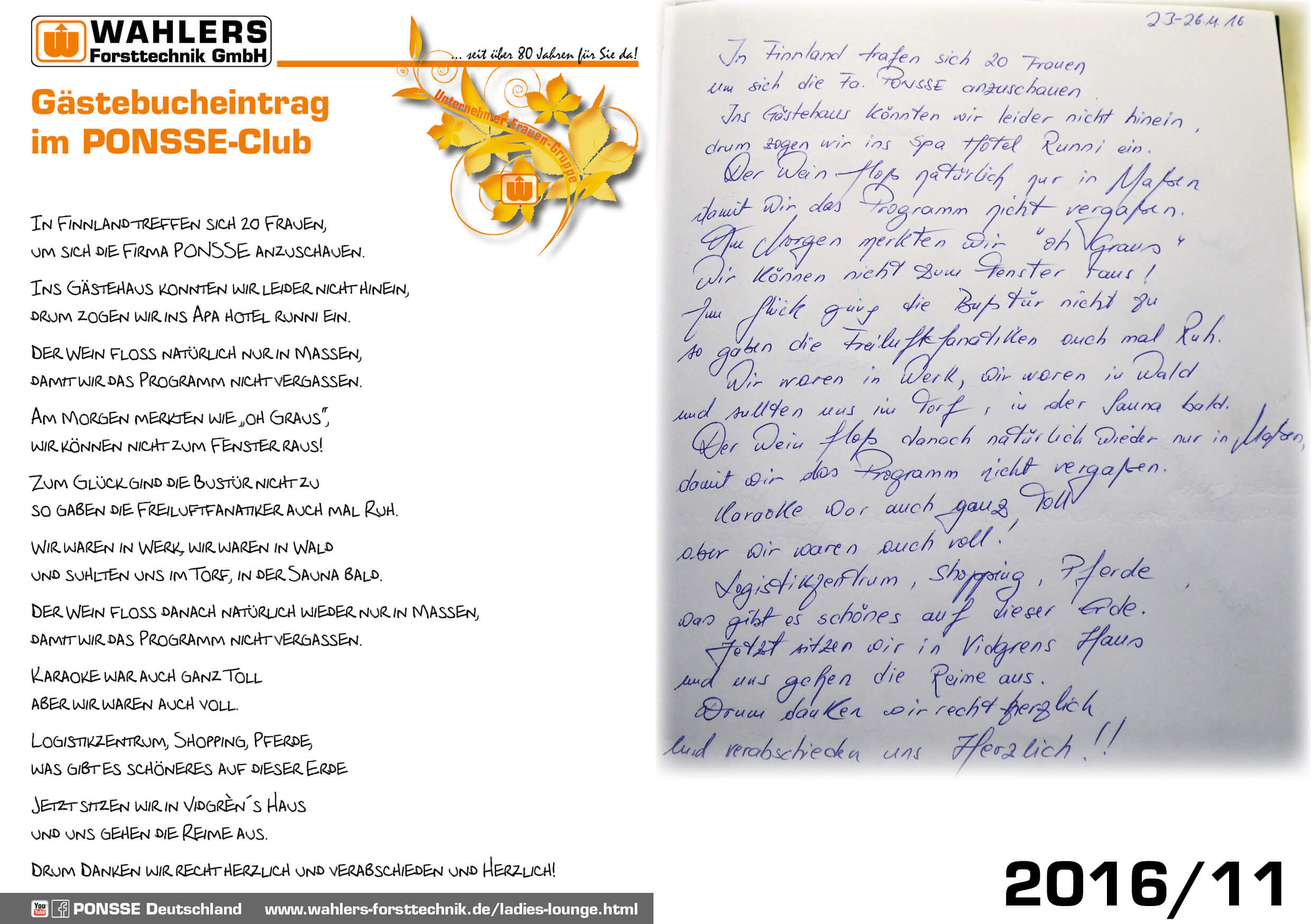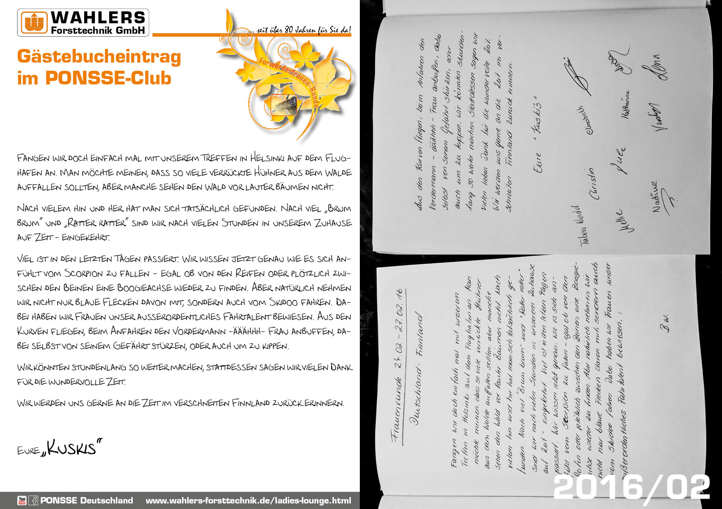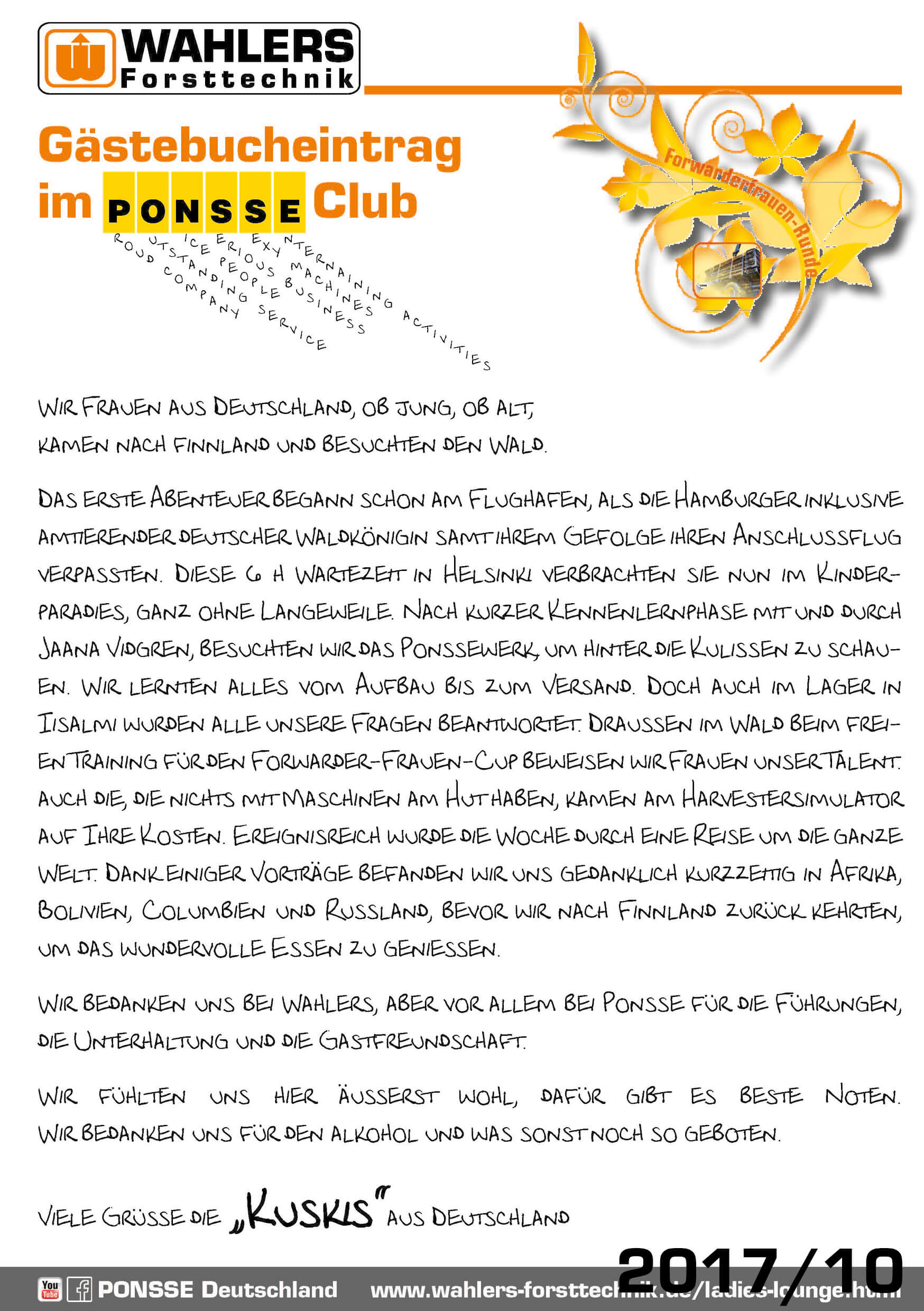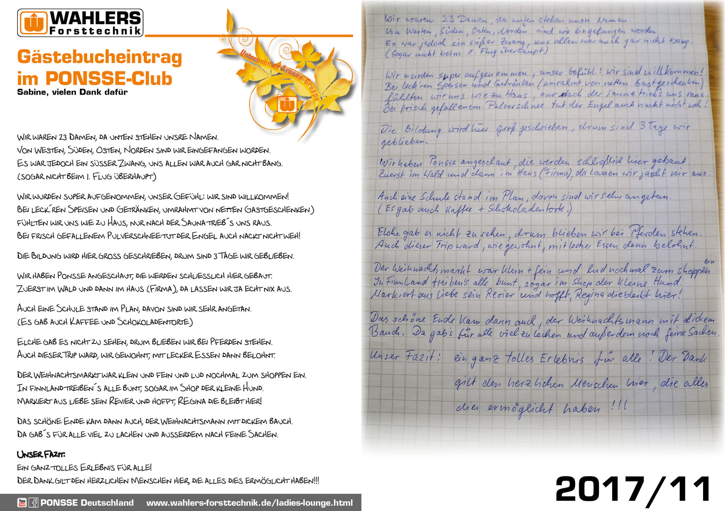 Darüber hinaus organisieren wir seit über 15 Jahren Fachreisen nach Finnland mit einem Besuch im PONSSE-Werk – unterstützt von der Einari Vidgrén Foundation, die neben Stipendien auch Weiterbildungen und Projekte in der Forstwirtschaft fördert.