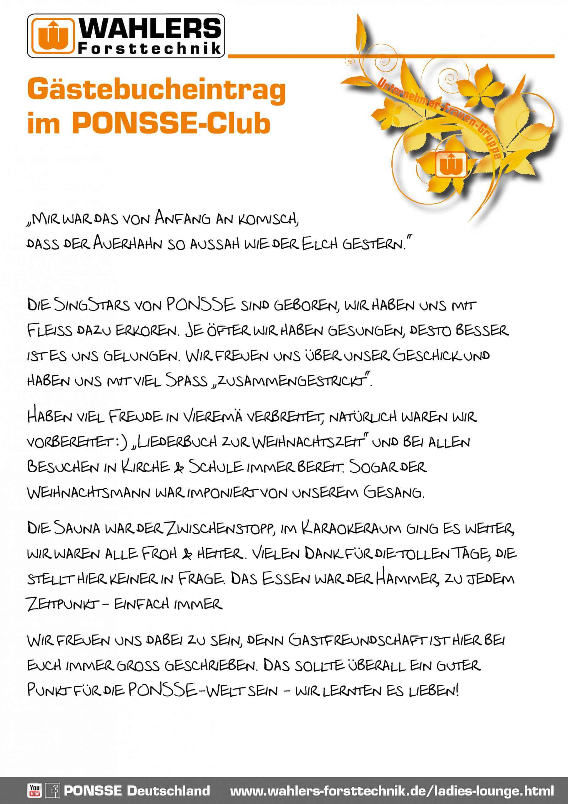 Seit 2002 ist die PONSSE Ladies Lounge der Treffpunkt für Unternehmerinnen, Fahrerinnen und Interessentinnen in der Forstwirtschaft. Zum Austauschen, Netzwerken und Inspirieren.