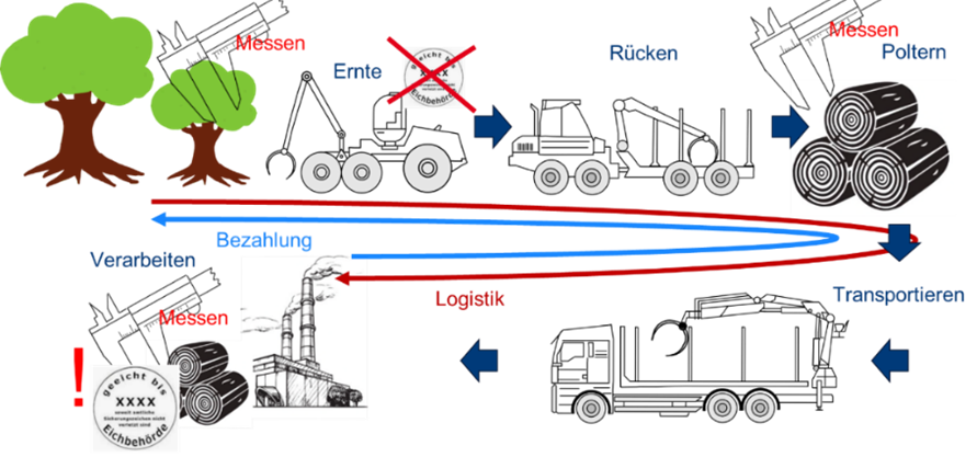 Das Vorhaben „TimberVision“ zielt auf die Entwicklung einer gesetzeskonformen, optischen Messtechnik für Harvester ab, um die Holzvermessung in der Forstwirtschaft weiter zu digitalisieren und die Effizienz der Lieferkette erheblich zu verbessern. Die aktuelle Messmethode der Harvester, die auf taktilen Sensoren basiert, ist nicht gesetzeskonform, da die Messerwerte durch äußere Einflüsse sowie Bedienereingriffe verfälscht werden können. Die fehlende zugelassene Holzvermessung direkt beim Holzeinschlag erschwert die Abrechnung für alle Beteiligten und führt zu Ineffizienzen in der gesamten Logistikkette. Derzeit erfolgt die Abrechnung von Rundholz auf Grundlage von Messungen im Sägewerk (am Ende der Logistikkette) oder einer separaten Messung am Polter. Dies führt zu mehrfachen redundanten Kontrollmessungen im Wald durch verschiedene Akteure in der Logistikkette und verursacht eine Ressourcenverschwendung, weil die aktuellen Messmethoden am Harvester nicht berücksichtigt werden können.
